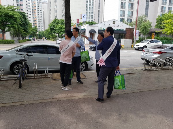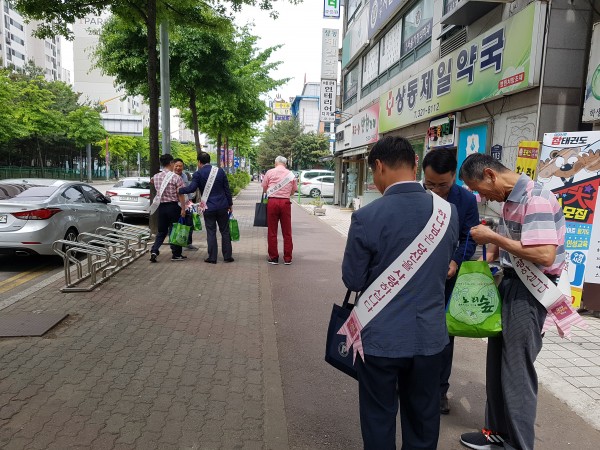 상가를 돌며 열심히 전도하였습니다.