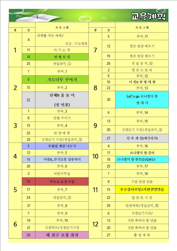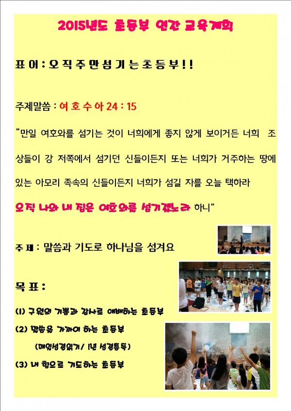 ilsim Contents 일심나눔터 공지사항 경조부 게시판 행사갤러리 새가족소개 섬김부서 유아부 유치부 유년부 초등부 학생부 청년부 남전도회 여전도회 예배설교 목사님설교 초청강사설교 특별영상 찬양 교회소개 교회비전 예배안내 섬기는이들 교회발자취 오시는길 초등부 초등부 > 섬김부서 > Home 초등부 2015년도 초등부 연간 계획 페이지 정보 작성자 관리자 작성일15-07-09 15:52 조회6,445회 댓글0건 이전글 목록 본문 2015년도 초등부 연간 계획 댓글목록 등록된 댓글이 없습니다. 이전글 목록